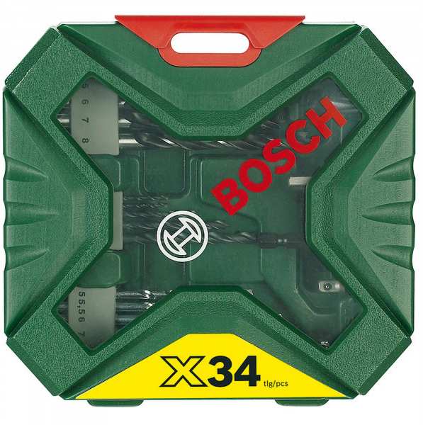The 34-piece X-Line Classic drill and screwdriver set includes a comprehensive range of drills and bits for everyday household use. It contains 5 high-quality, durable drills for wood, stone and metal, 13 screwdriver bits (25mm) for 3 different screw types and 3 common sockets for processing hexagon screws. The magnetic universal bit holder enables a quick bit change and a good hold of the screw in the bit. The practical Bosch X-Line case ensures order and clarity and can be refilled if necessary.