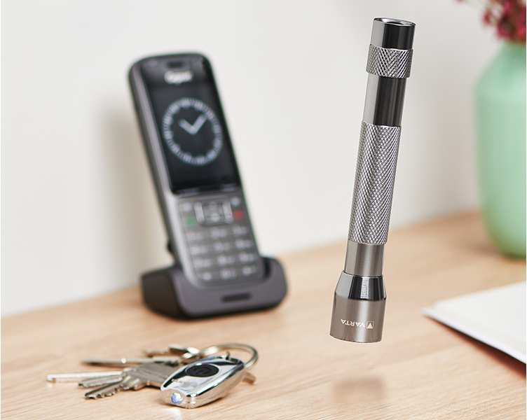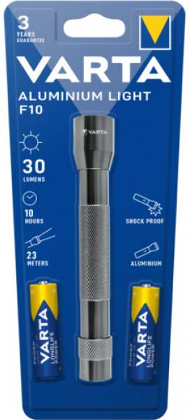 Varta 16606 101 421. Flashlight type Hand flashlight, Product colour Aluminium, Housing material Acrylonitrile butadiene styrene (ABS), Aluminium. Lamp type LED, Lamps quantity 5 lamp(s), Luminous flux 30 lm. Battery type AA, Battery voltage 1.5 V. Depth 142 mm, Weight 83 g, Head diameter 23.5 cm. Quantity per pack 1 pc(s)