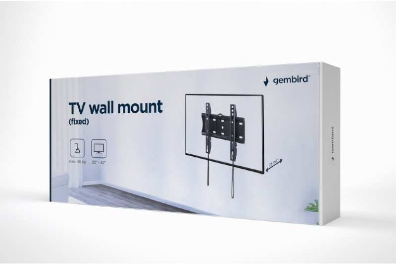 Gembird WM-42F-01. Maximum weight capacity 30 kg, Minimum screen size 58.4 cm (23), Maximum screen size 106.7 cm (42), Minimum VESA mount 75 x 75 mm, Maximum VESA mount 200 x 200 mm. Distance to the wall (max) 2.5 cm. Product colour Black