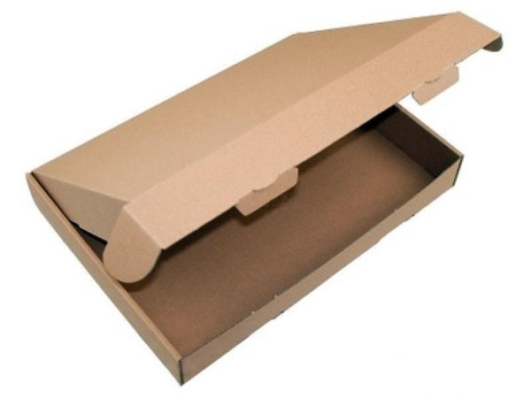 Cardboard box with outer dimensions 35 x 25 x 5 cm. Single layer, stable.
