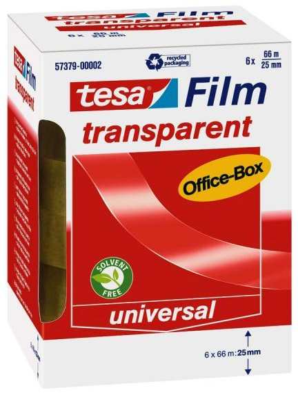 Der transparente Klebefilm für alle Standardanwendungen im Büro und Haushalt. Transparent. Gute Klebkraft. Leise abrollbar. Alterungsbeständig. Vielseitig einsetzbar. PP-Folie. Für alle tesafilm Abroller geeignet.
