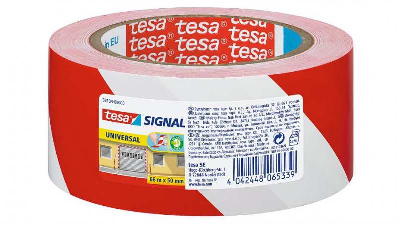 The color of the self-adhesive Tesa marking tape corresponds to the recommendations of the EU and, with its red/white color combination, ensures the desired signal effect. With a width of 5 cm, the marking tape can be used wherever special safety is required, e.g. on a construction site.