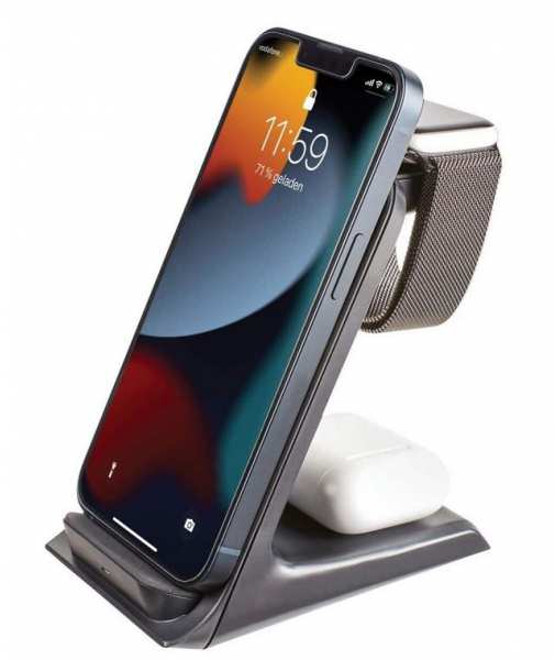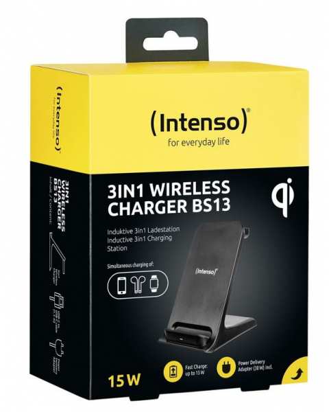 Load everything.At the same time.Your all-in-one wireless charger. The 3-in-1 station charges your smartphone, your Apple Watch and your earbuds at the same time and with maximum efficiency with the quick charging function. Thanks to integrated magnets, your devices are always perfectly positioned. No more separate chargers - the 3in1 Wireless Charger BS13 has everything you need.outputPhone 7.5W | 10.0W | 15.0WHeadphones 5.0WClock* 2.0WInputUSB-CCurrent consumption9.0V-3.0A | PD 3.0 / QC 3.0 fast charging power supply