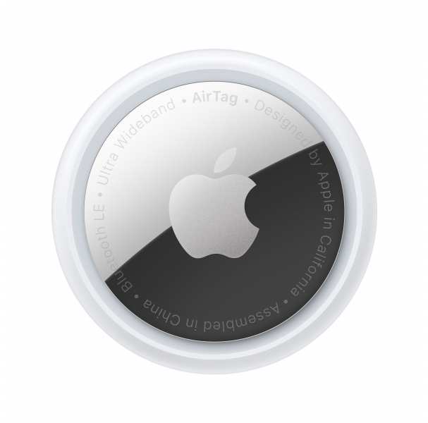 Apple AirTag (1 Pack). Product colour Silver, White, Mobile operating systems supported iOS 14.5, International Protection (IP) code IP67. Battery type CR2032. Diameter 3.19 cm, Height 8 mm, Weight 11 g