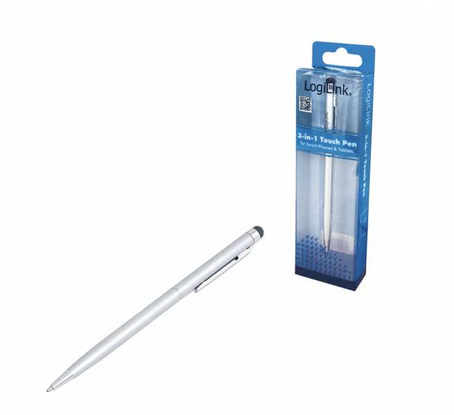 LogiLink AA0041 - Silver - Aluminium - 1 pc(s) - 7.54 x 7.54 x 140 mm - Touch Pen with integrated ball pen