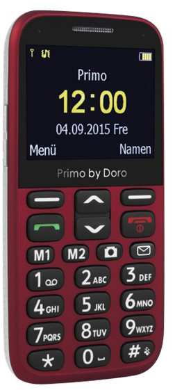 Doro Primo 366. Form factor Bar. SIM card capability Single SIM. Display diagonal 5.84 cm (2.3), Display resolution 320 x 240 pixels. Rear camera resolution (numeric) 0.3 MP. Bluetooth. FM radio. Battery technology Lithium-Ion (Li-Ion), Battery capacity 1000 mAh, Standby time (2G) 288 h. Weight 87 g. Product colour Red