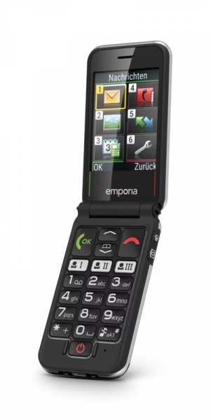 Emporia V228. Form factor Flip. SIM card capability Single SIM. Display diagonal 7.11 cm (2.8), Display resolution 240 x 320 pixels, External display. Bluetooth. Battery technology Lithium-Ion (Li-Ion), Battery capacity 1300 mAh. Product colour Black