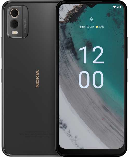 Nokia C C32. Display diagonal 16.6 cm (6.52), Display resolution 1600 x 720 pixels. RAM capacity 3 GB, Internal storage capacity 64 GB. Rear camera resolution (numeric) 50 MP, Rear camera type Dual camera. SIM card capability Dual SIM. Operating system installed Android 13. Battery capacity 5000 mAh. Product colour Charcoal. Weight 199.4 g