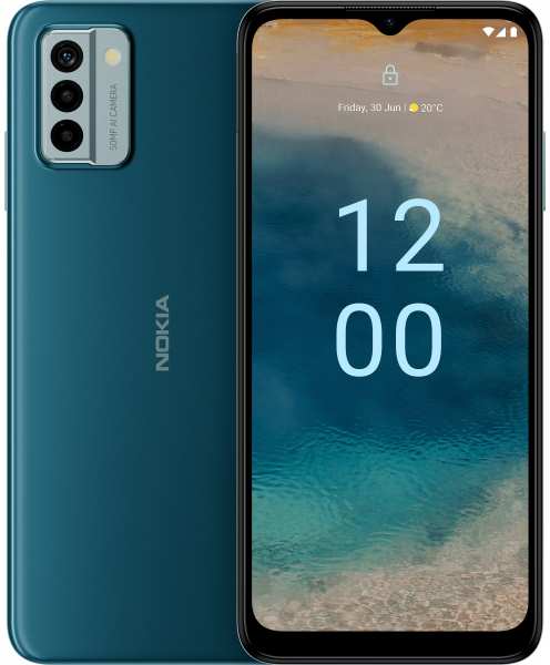 Nokia G22. Display diagonal 16.6 cm (6.52), Display resolution 1200 x 720 pixels. Processor frequency 1.6 GHz, Processor family Unisoc, Processor model T606. RAM capacity 4 GB, Internal storage capacity 64 GB. Rear camera resolution (numeric) 50 MP, Rear camera type Triple camera. SIM card capability Dual SIM. Operating system installed Android 12. Battery capacity 5050 mAh. Product colour Blue. Weight 195 g