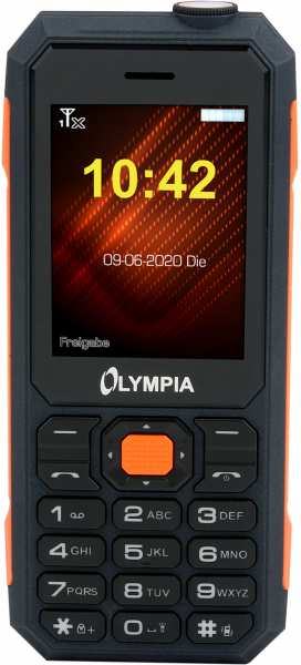 Olympia Active Outdoor. Form factor Bar. SIM card capability Dual SIM. Display diagonal 6.1 cm (2.4). Bluetooth. FM radio. Battery technology Lithium-Ion (Li-Ion), Battery capacity 1800 mAh, Standby time (2G) 240 h. Weight 112 g. Product colour Black, Orange