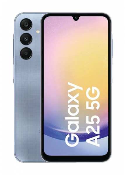 Samsung Galaxy A25 5G SM-A256B. Display diagonal 16.5 cm (6.5), Display resolution 1080 x 2340 pixels, Display type AMOLED. Processor frequency 1.8 GHz, Processor family Samsung Exynos, Processor model 1280. Internal storage capacity 128 GB. Rear camera resolution (numeric) 50 MP, Rear camera type Triple camera. SIM card capability Dual SIM. Operating system installed Android 14. Battery capacity 5000 mAh. Product colour Blue. Weight 197 g