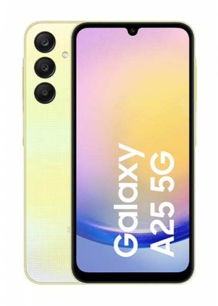 Samsung Galaxy A25 5G . Display diagonal 16.5 cm (6.5). RAM capacity 8 GB, Internal storage capacity 256 GB. Rear camera resolution (numeric) 50 MP, Rear camera type Triple camera. Battery capacity 5000 mAh. Product colour Yellow