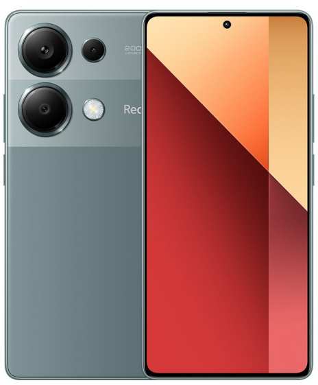 Xiaomi Redmi Note 13 Pro. Display diagonal 16.9 cm (6.67), Display resolution 2400 x 1080 pixels. Processor family MediaTek, Processor model Helio G99 Ultra. RAM capacity 12 GB, RAM type LPDDR4X, Internal storage capacity 512 GB. Rear camera resolution (numeric) 200 MP, Rear camera type Triple camera. SIM card capability Dual SIM. Operating system installed Android 12. Battery capacity 5000 mAh. Product colour Green. Weight 187 g