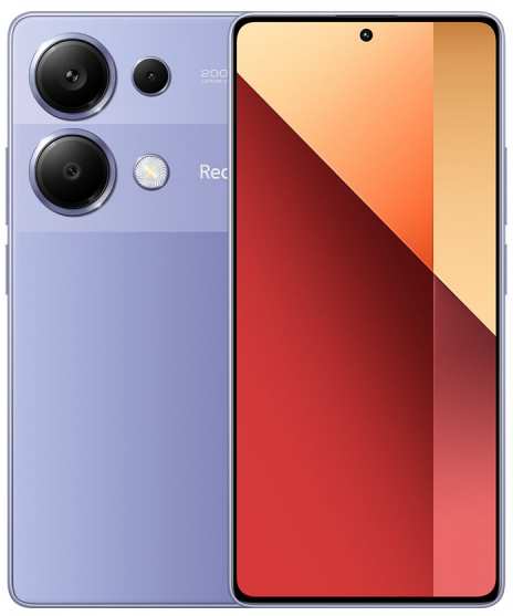 Xiaomi Redmi Note 13 Pro. Display diagonal 16.9 cm (6.67), Display resolution 2400 x 1080 pixels. Processor family MediaTek, Processor model Helio G99 Ultra. RAM capacity 12 GB, RAM type LPDDR4X, Internal storage capacity 512 GB. Rear camera resolution (numeric) 200 MP, Rear camera type Triple camera. SIM card capability Dual SIM. Operating system installed Android 12. Battery capacity 5000 mAh. Product colour Lavender, Purple. Weight 187 g