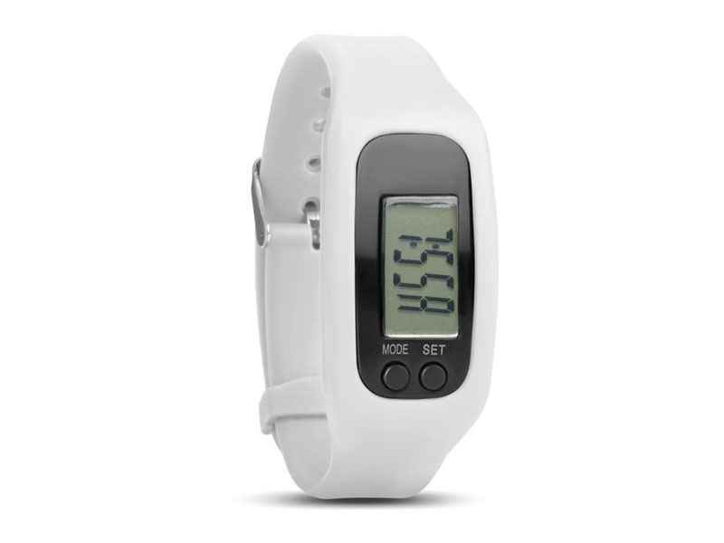 Armband mit Schrittzähler Funktion in der Farbe Weiss. Mit Schritt- und Kalorienzähler, Kilometer oder Meilenmessung. Lieferung erfolgt inkl. einer AG10 Knopfzelle.