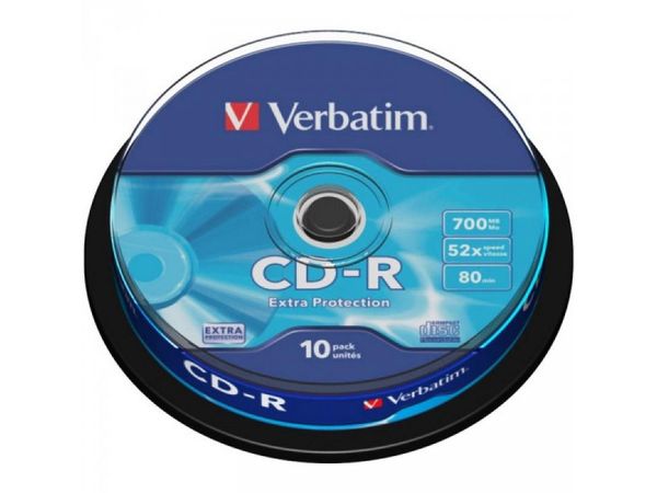 CD-R Rohlinge / Kapazität 700 MB / Brenngeschwindigkeit max. 52-fach / Spieldauer 80 Minuten / VPE 10er Cakebox / Oberfläche Verbatim gelabelt / Besonderheiten DataLife, Extra Protection Surface