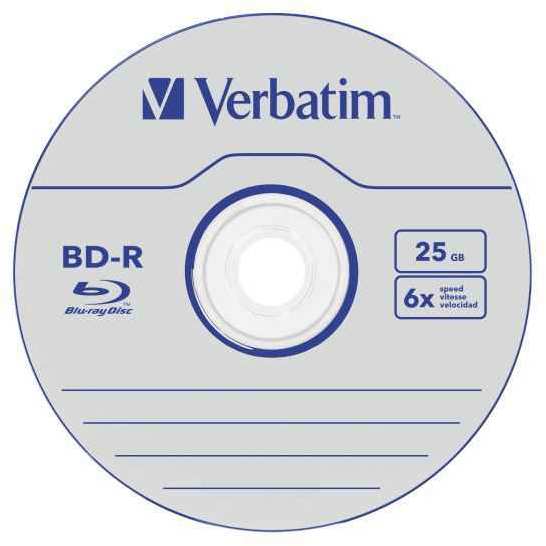 Verbatim Datalife 6x. Type BD-R, Native capacity 25 GB, Wavelength 405 nm. BD-R write speed 6x. BD-R read speed 6x. Package type Spindle. Quantity per pack 25 pc(s)