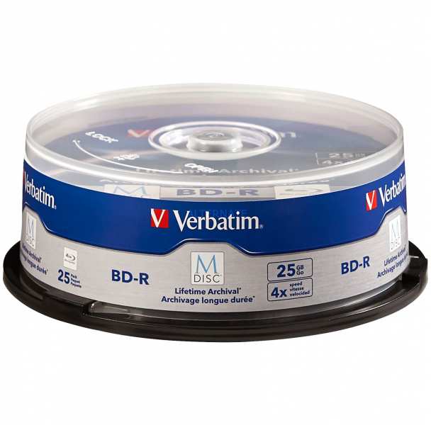 Verbatim 98909. Type BD-R, Native capacity 25 GB. BD-R write speed 4x. Quantity per pack 25 pc(s), Package type Spindle