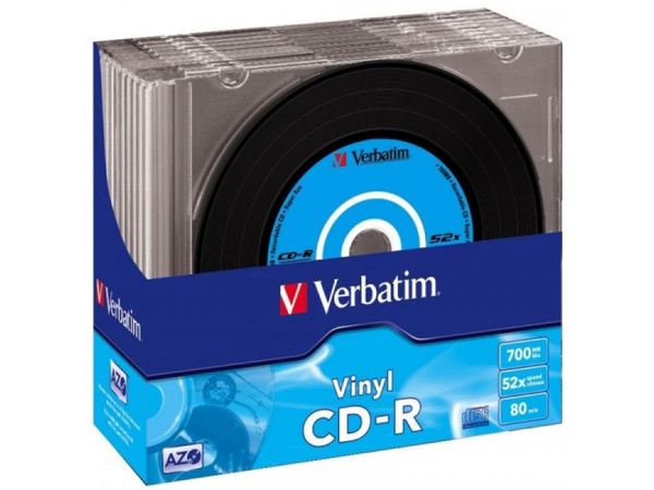 CD-R Rohlinge / Kapazität 700 MB / Brenngeschwindigkeit max. 52-fach / Spieldauer 80 Minuten / VPE 10St Slimcase / Oberfläche Verbatim gelabelt, Vinyl Optik / Besonderheiten DataLifePlus, Super AZO