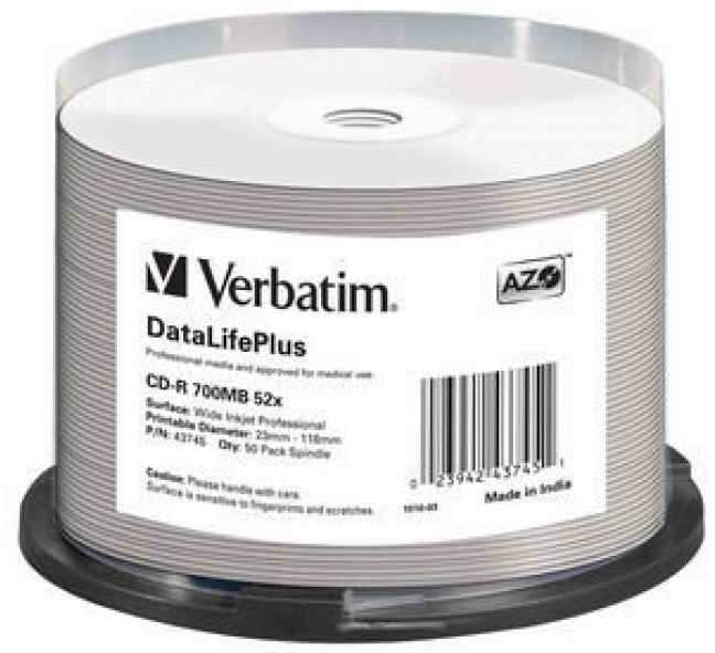 Verbatim DataLifePlus. Type CD-R, CD storage capacity 700 MB, Quantity per pack 50 pc(s). CD write speed 52x. Package type Spindle