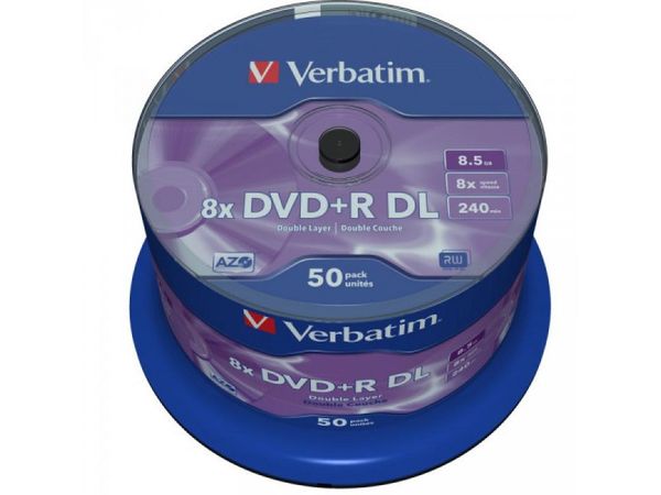 DVD+R Double Layer Rohlinge / Kapazität 8.5 GB / 8 fache Brenngeschwindigkeit/ VPE 50 Cakebox / Besonderheiten Matt Silver Surface /Two AZO recording layers on one side
