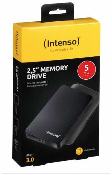 General Product line Intenso Memory Drive Type Hdd Build size 2.5 Build type (internal/external) External Weight 240 g Material Plastic Interfaces / Connectivity External interface USB 3.0 Technical specifications Memory capacity 5000 GB RPM 5400 rpm Buffer 8 MB Transferrate 85 MB/s