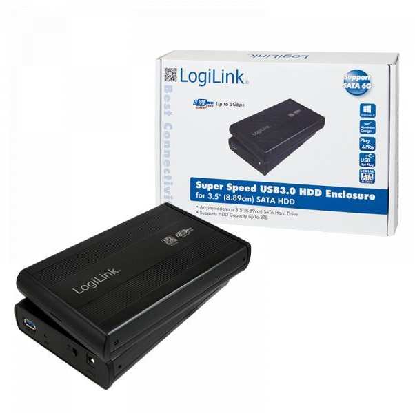 Externes Aluminium Gehäuse von LogiLink zum Einbau und Betrieb von 3,5 Zoll S-ATA Festplatten. Genormte Größe. Kompatibel zu allen 3,5 Zoll S-ATA Festplatten. Der Anschluss erfolgt am PC oder Notebook über die schnelle USB 3.0 Super Speed Schnittstelle. USB ist die Abkürzung für Universal Serial Bus und arbeitet mit einer Übertragungsrate von bis zu 5 Gbit/s. Der Anschluss ist kinderleicht und das Gerät wird von modernen Betriebssystemen automatisch erkannt.