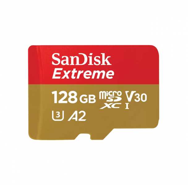SanDisk Extreme. Capacity 128 GB, Flash card type MicroSDXC, Flash memory class Class 10, Internal memory type UHS-I, Read speed 160 MB/s, Write speed 90 MB/s, UHS Speed Class Class 3 (U3), Video Speed Class V30. Protection features Shock resistant, Water resistant, X-ray proof, Product colour Gold, Red
