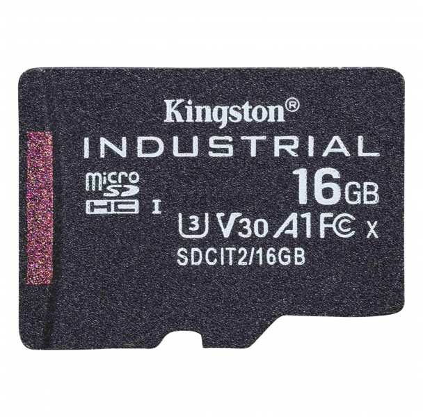 Kingston Technology Industrial. Capacity 16 GB, Flash card type MicroSDHC, Flash memory class Class 10, Internal memory type UHS-I, UHS Speed Class Class 3 (U3), Video Speed Class V30. Product colour Black