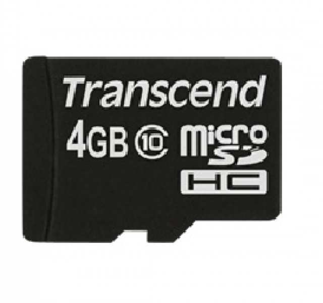 Transcend TS4GUSDC10. Capacity 4 GB, Flash card type MicroSDHC, Flash memory class Class 10, Write speed 10 MB/s. Product colour Black