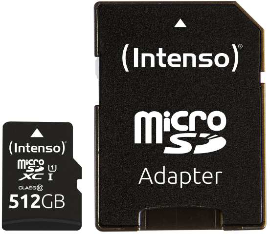 Intenso microSD 512GB UHS-I Perf CL10| Performance. Capacity 512 GB, Flash card type MicroSD, Flash memory class Class 10, Internal memory type UHS-I, UHS Speed Class Class 1 (U1). Protection features Shock resistant, Temperature proof, Waterproof, X-ray proof, Product colour Black