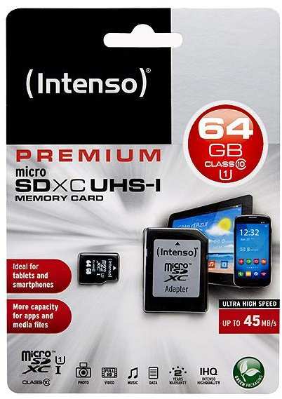 Intenso Memory Card MicroSDXC UHS-I Premium 64GB + Adapter CL10 (3423490)