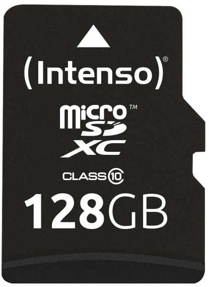 Intenso 3413491. Capacity 128 GB, Flash card type MicroSDXC, Flash memory class Class 10, Read speed 25 MB/s. Protection features Shock resistant, Temperature proof, Waterproof, X-ray proof, Product colour Black