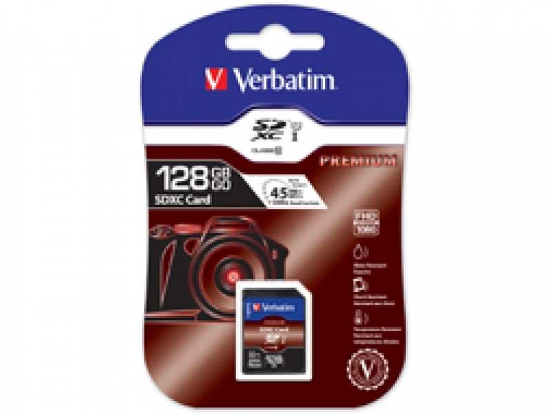 Verbatim Premium. Capacity 128 GB, Flash card type SDXC, Flash memory class Class 10, Read speed 10 MB/s, Write speed 10 MB/s. Product colour Multicolor