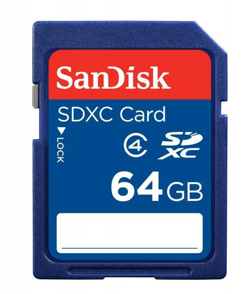Sandisk 64GB SDXC. Capacity 64 GB, Flash card type SDXC, Flash memory class Class 4. Protection features Shock resistant,Water resistant, Product colour Blue