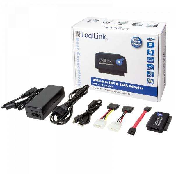 Mit diesem LogiLink Adapter verbinden Sie S-ATA und IDE Festplatten sowie ATAPI Laufwerke mit dem USB 2.0 Port Ihres Computers. Der Adapter verfügt über einen 2,5 und 3,5 Zoll IDE sowie einen S-ATA Festplatten Anschluss mit passender Stromversorgung. Die notwendigen Kabel und Adapter sowie ein Netzteil sind im Lieferumfang enthalten. Mit der One Touch Backup Funktion (OTB) können Daten mit einem Knopfdruck gesichert werden.