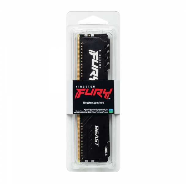 Kingston Technology FURY Beast. Component for PC/server, Internal memory 16 GB, Memory layout (modules x size) 1 x 16 GB, Internal memory type DDR4, Memory clock speed 3200 MHz, Memory form factor 288-pin DIMM, CAS latency 16