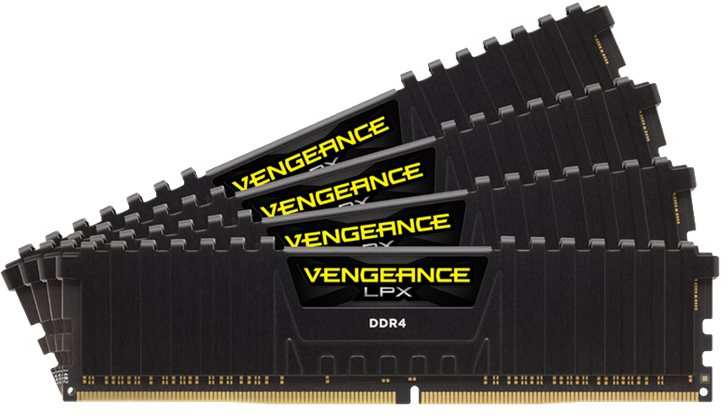Corsair Vengeance LPX. Component for PC/Server, Internal memory 32 GB, Memory layout (modules x size) 4 x 8 GB, Internal memory type DDR4, Memory clock speed 3200 MHz, Memory form factor 288-pin DIMM, CAS latency 16, Product colour Black