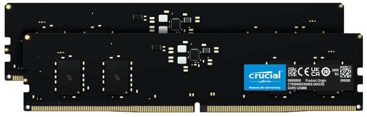 Micron RAM - 16 GB (2 x 8 GB Kit) - DDR5 4800 UDIMM CL40 - schwarz - CT2K8G48C40U5 Kapazität 16 GB (2x
