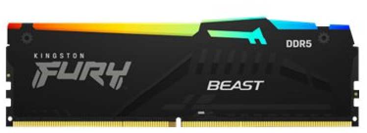 Kingston Technology FURY Beast RGB. Component for PC/Server, Internal memory 16 GB, Memory layout (modules x size) 1 x 16 GB, Internal memory type DDR5, Memory clock speed 5200 MHz, Memory form factor 288-pin DIMM, CAS latency 36