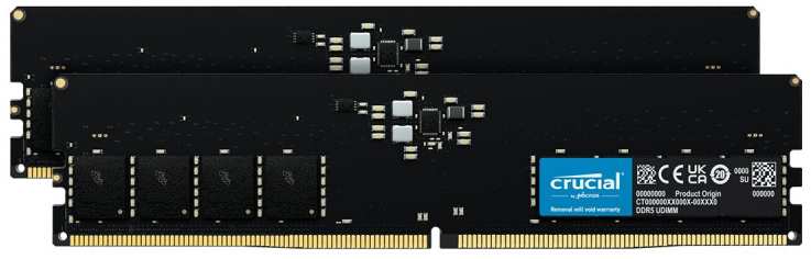 Micron RAM - 32 GB (2 x 16 GB Kit) - DDR5 4800 UDIMM CL40 - schwarz - CT2K16G48C40U5 Kapazität 32 GB (2x