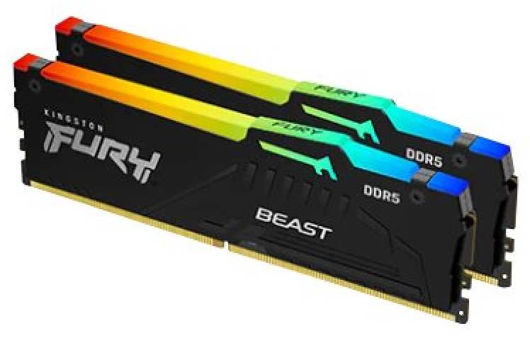 Kingston Technology FURY Beast RGB. Component for PC/Server, Internal memory 64 GB, Memory layout (modules x size) 2 x 32 GB, Internal memory type DDR5, Memory clock speed 5600 MHz, Memory form factor 288-pin DIMM, CAS latency 40