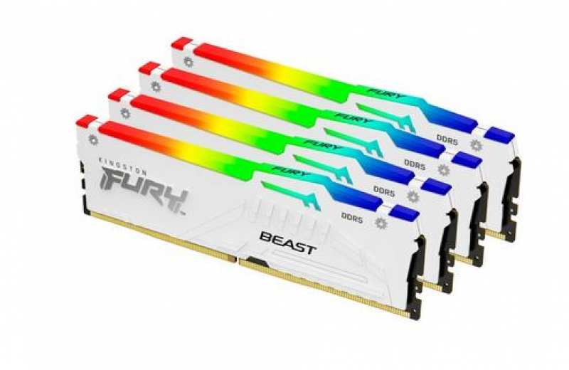 Kingston 64GB 6000MT/s DDR5 CL40 DIMM Kit of 4 Fury Beast White RGB - 64 GB - 64 GB - DDR5 - FURY Beast 64Go 6000MT/s DDR5 CL40 DIMM