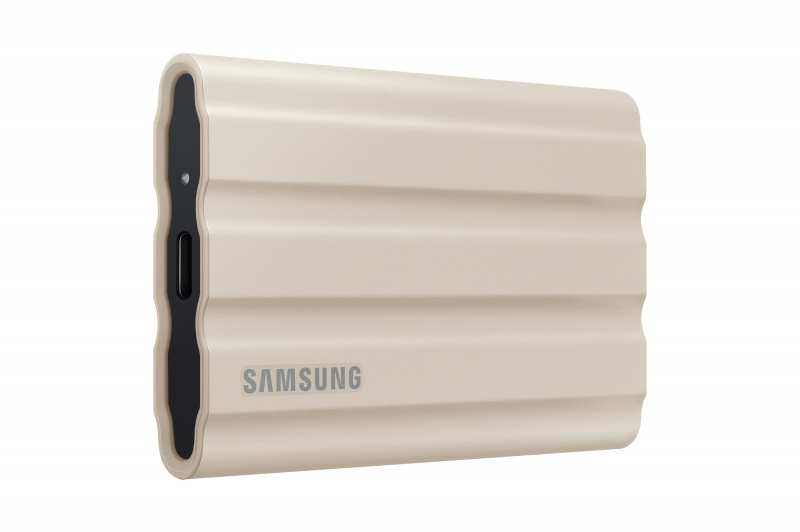 Solid state drive SSD capacity 1000 GB NVMe Y Read speed 1050 MB/s Write speed 1000 MB/s Ports & interfaces USB connector USB Type-C USB version 3.2 Gen 2 (3.1 Gen 2) Features Product colour Beige Housing material Rubber Protection features Dust resistant, Water resistant Password protection Y Weight & dimensions Width 59 mm Depth 13 mm Height 88 mm Weight 98 g Technical details Sustainability certificates CE, RoHS Packaging data Bundled software Samsung Portable SSD Software 1.0, Samsung Magican Software