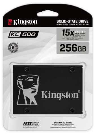 Kingston Technology KC600. SSD capacity 256 GB, SSD form factor 2.5, Read speed 550 MB/s, Write speed 500 MB/s, Data transfer rate 6 Gbit/s, Component for PC/notebook