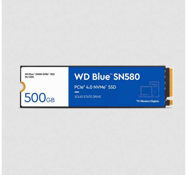 Western Digital Blue SN580. SSD capacity 500 GB, SSD form factor M.2, Read speed 4000 MB/s, Write speed 3600 MB/s, Component for PC/notebook