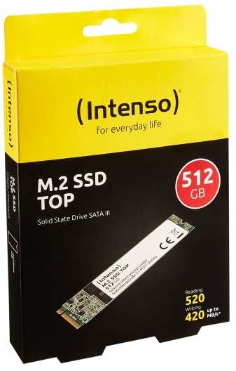 Intenso 3832450. SSD capacity 512 GB, SSD form factor M.2, Read speed 520 MB/s, Write speed 490 MB/s, Data transfer rate 6 Gbit/s, Component for PC/notebook