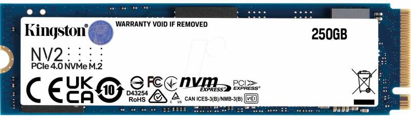 250 GB SSD Kingston NV2 M.2 2280 PCIe 4.0 NVMe[R3000/W1300] - Solid State Disk - NVMe
