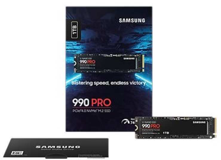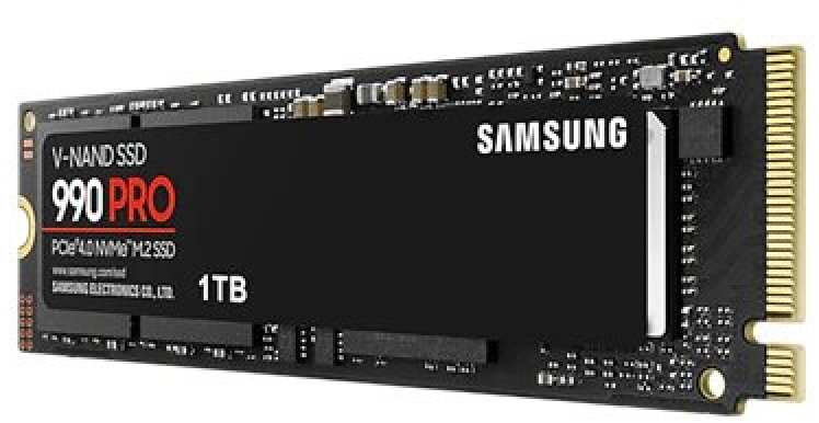 Samsung 990 PRO. SSD capacity 1000 GB, SSD form factor M.2, Read speed 7450 MB/s, Write speed 6900 MB/s, Component for PC