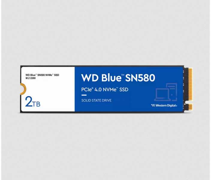 Western Digital Blue SN580. SSD capacity 2 TB, SSD form factor M.2, Read speed 4150 MB/s, Write speed 4150 MB/s, Component for PC/notebook